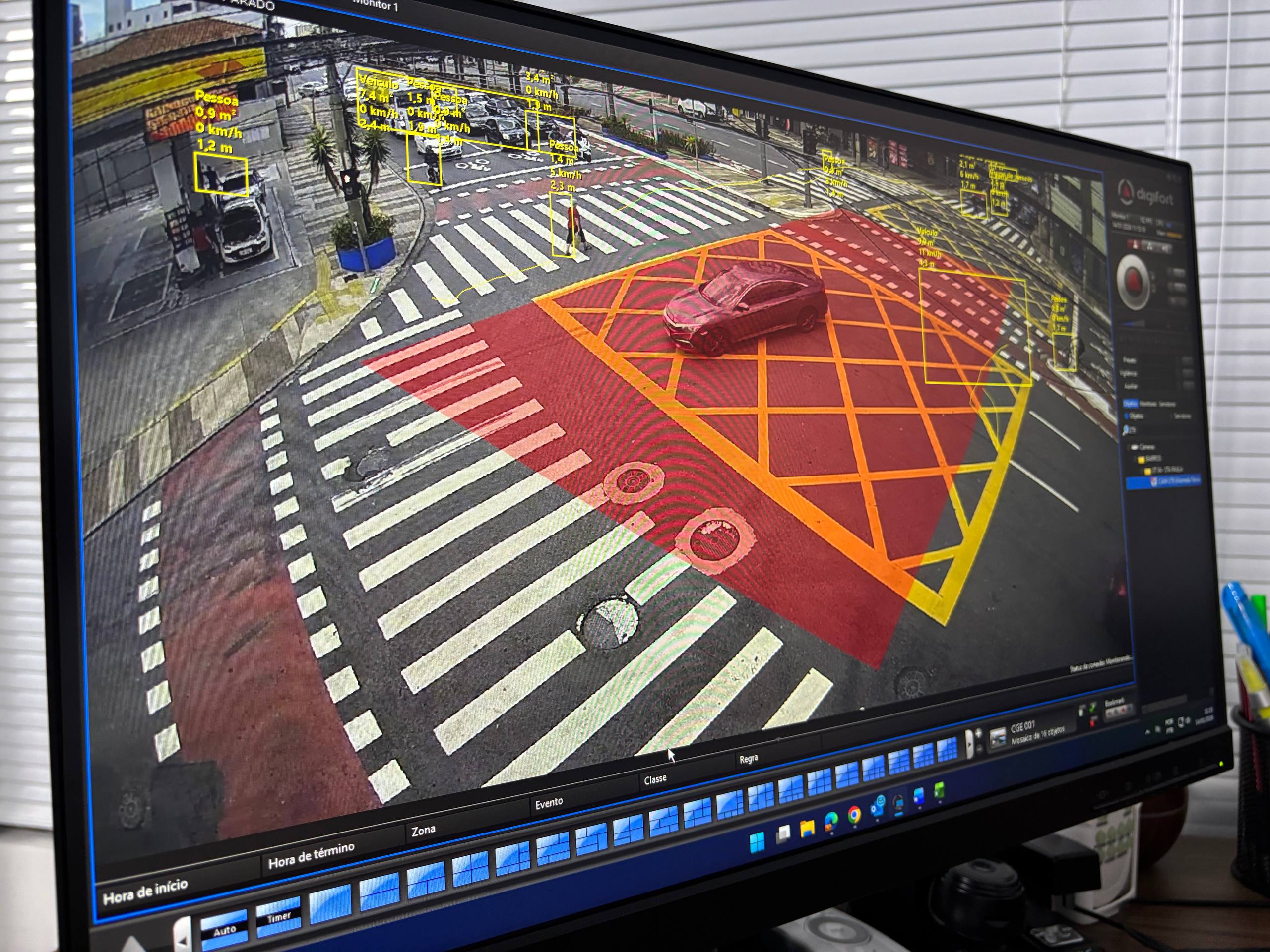 A mesma tecnologia também é aplicada ao monitoramento de áreas sensíveis, como regiões com grande circulação de pedestres ou pontos de ônibus, auxiliando na detecção de padrões que podem indicar riscos à segurança e possibilitando ações preventivas antes que ocorrências se concretizem.
