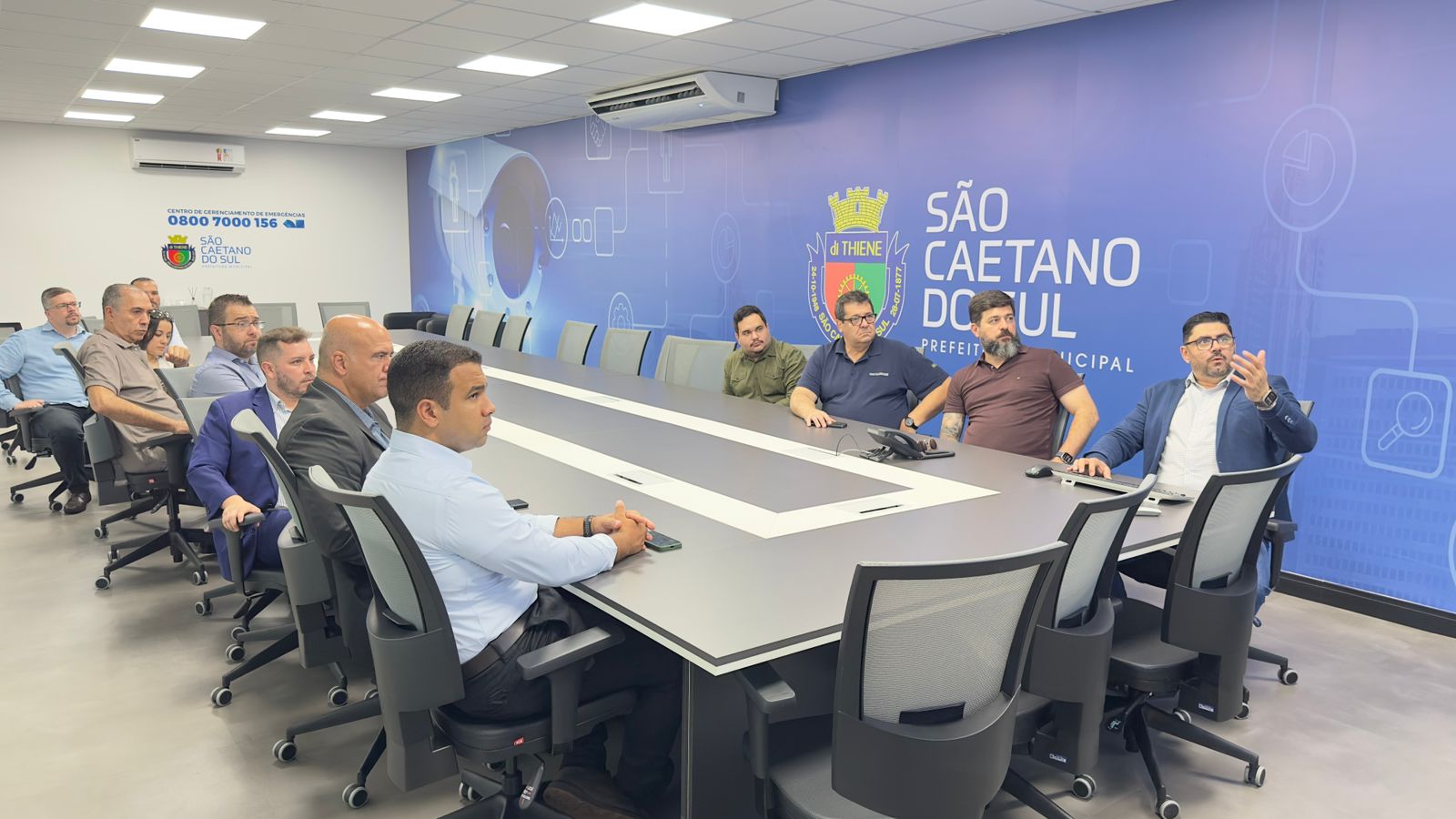 O CGE (Centro de Gerenciamento de Emergências) de São Caetano do Sul recebeu a visita de representantes de segurança e inteligência de empresas - até multinacionais -, que foram conhecer de perto a tecnologia do equipamento que monitora praticamente toda a cidade.