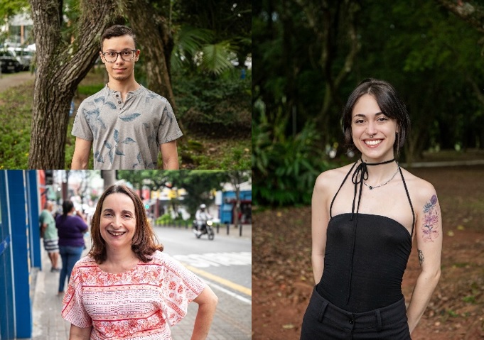 Vitor, Ellen e Julieta, ex-alunos de cursos técnicos do Alcina: histórias de sucesso. Foto: Letícia Teixeira / PMSCS