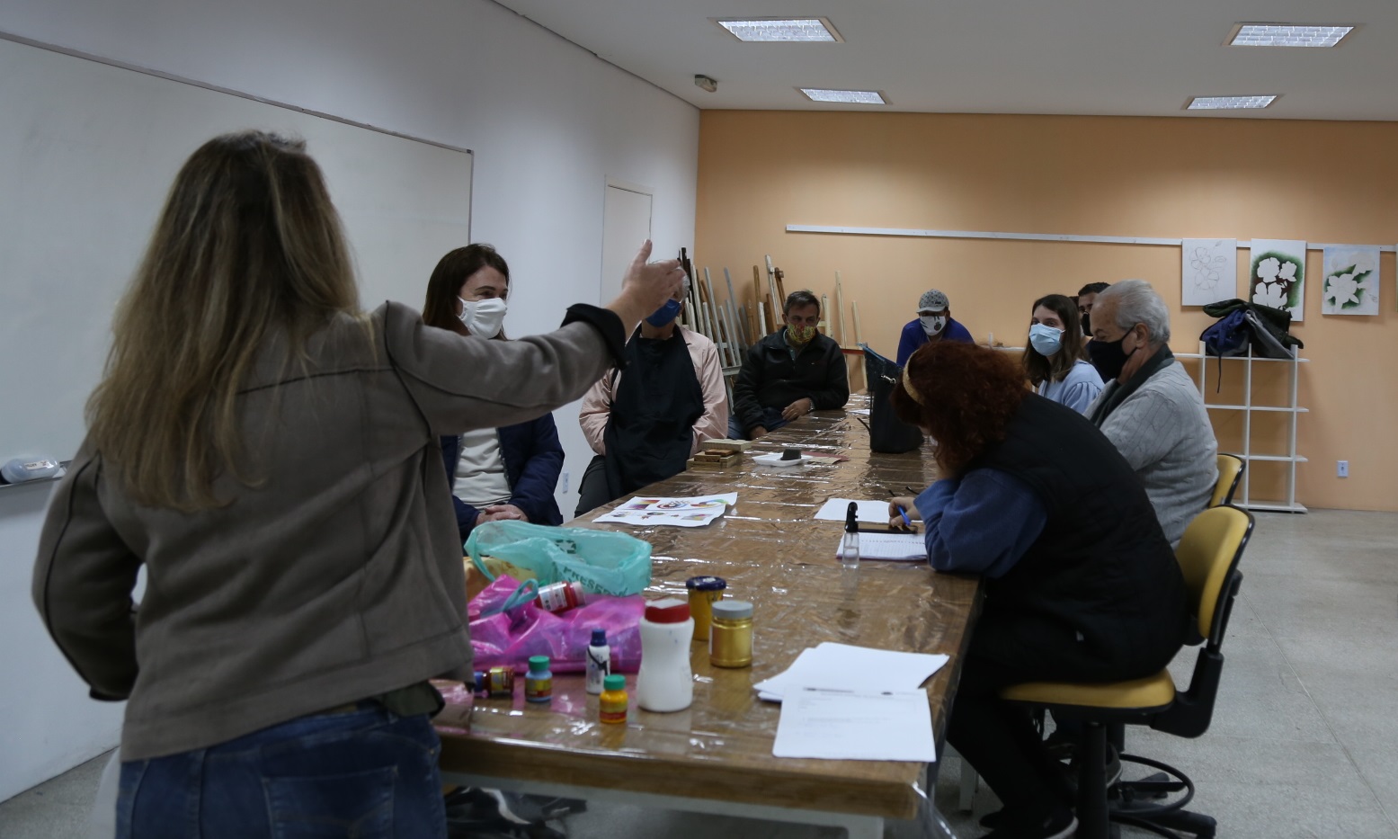 Foto: Oficina de Texturas e Pinturas em Parede, com Cristiane Rosa (curso presencial na Estação Cultura) Crédito: Regina Maria/Secult PMSCS